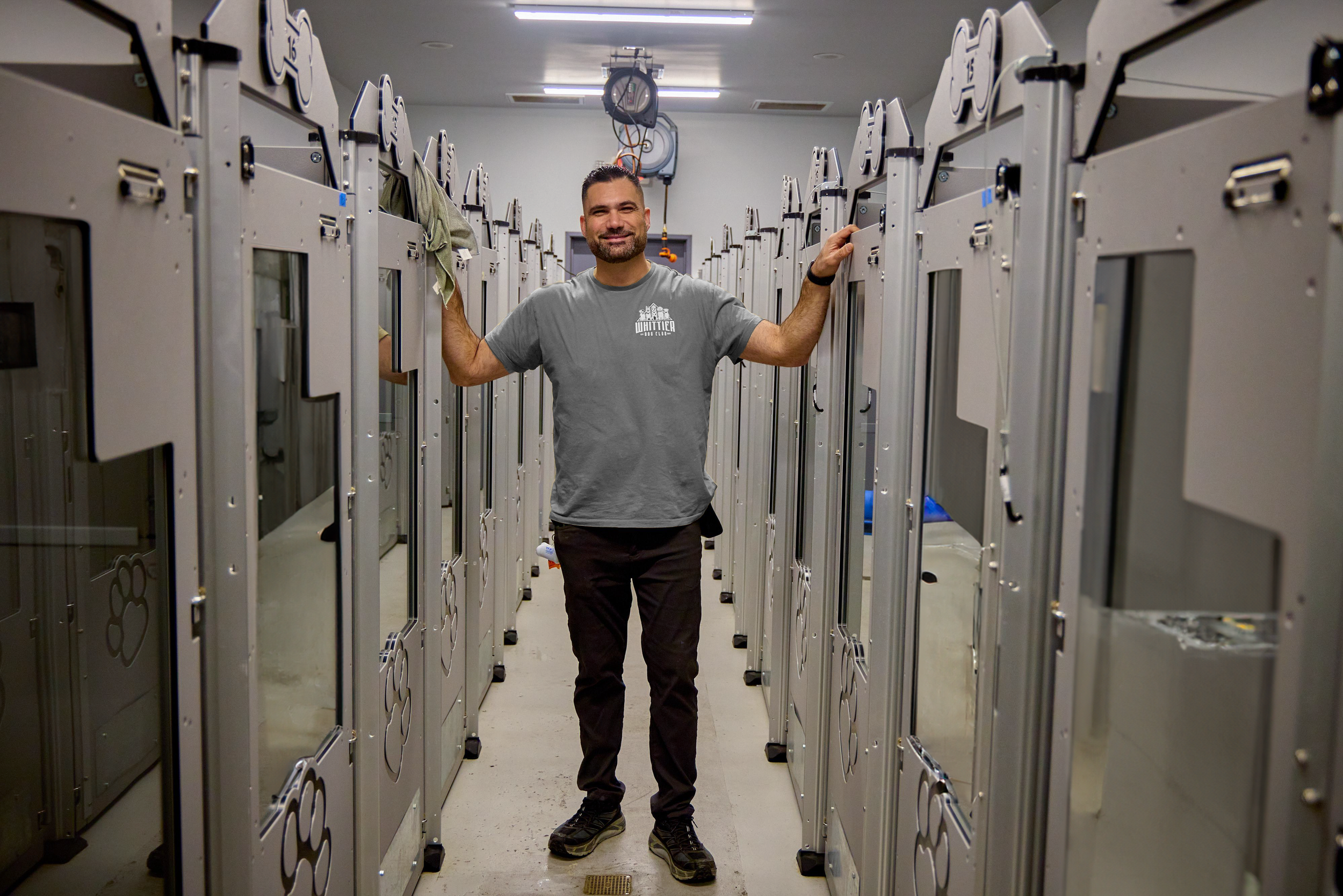 At Whittier Dog Club, our state-of-the-art boarding facility is designed with your dog’s comfort and safety in mind. We offer a variety of private room options, ensuring that every pup has a cozy and secure space to relax. Each room is thoughtfully outfitted with a comfortable bed, fresh water, calming music, and climate control to provide a soothing and restful environment.